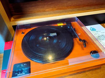 客室はコンパクトながら機能的にまとまっており、レコードプレーヤーが置いてあるところなどもよかったです。
