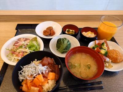 夕食に和歌山ラーメンを食べたため、今回は夜鳴きそばは食べませんでしたが、評判の朝食ビュッフェではご当地グルメのみかんジュースやめはり寿司を美味しくいただきました!