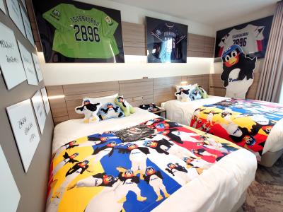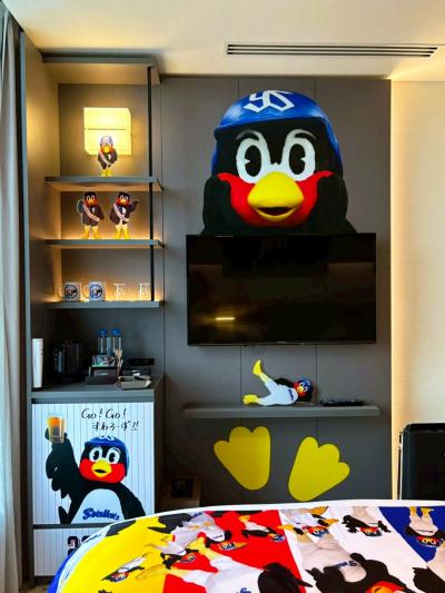 つば九郎ファンの娘と、日本青年館ホテルのつば九郎ルームに泊まりました。