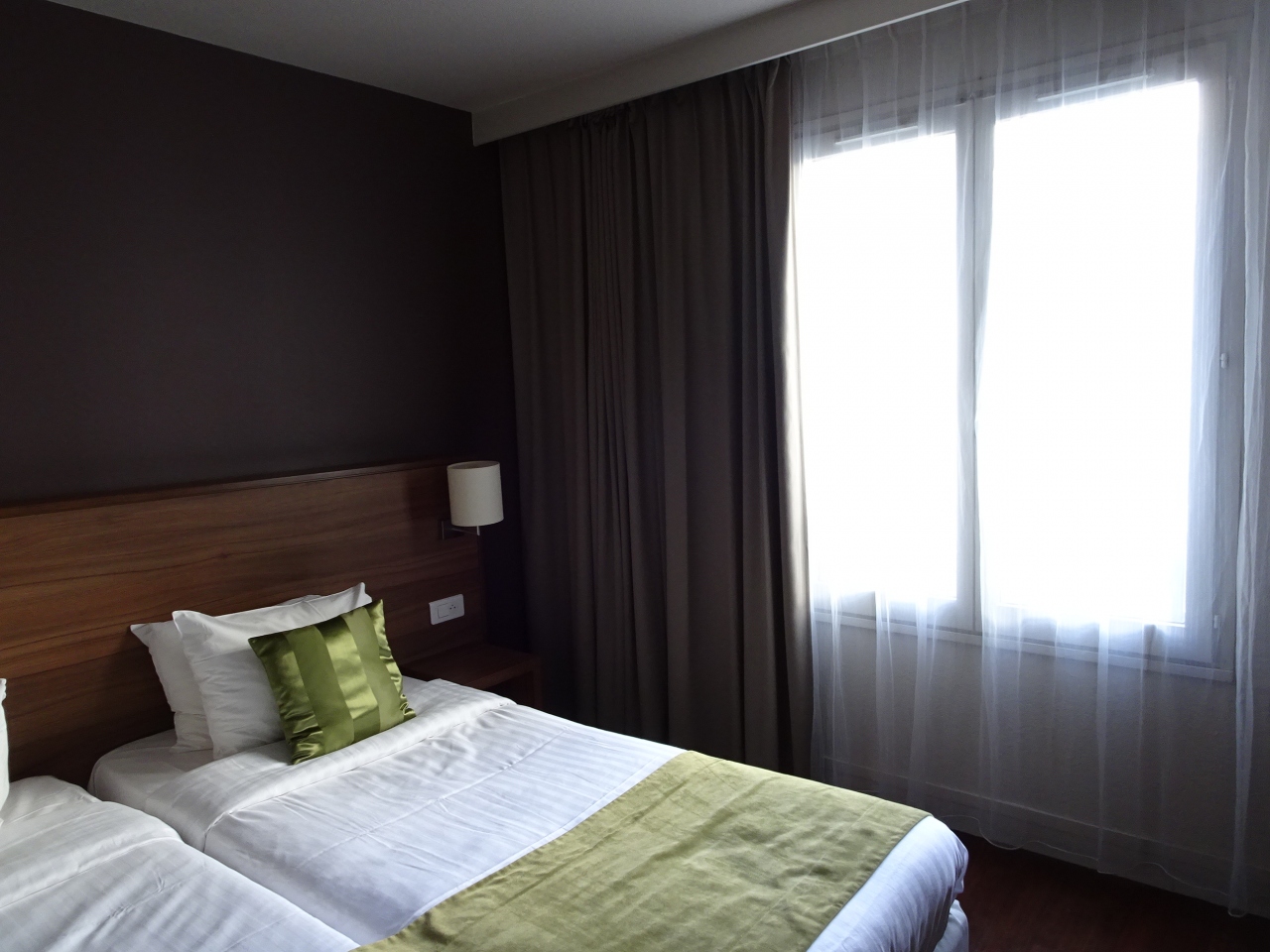 CDG VALとRERの駅の目の前なので、空港に行くにもパリ市内に行くにも便利です。駅には夜遅くまでやっているマークス&スペンサーもあります。巨大ホテルでチェックインには行列ができていて時間がかかりましたが、チェックアウトはフロントのBOXにカードを返すだけ。客室は狭いですが、掃除は行き届いていてとても清潔です。必要最低限なものはそろっていますが、電気ケトルや冷蔵庫、無料のお水はありません。また、荷物預かりサービスはなく、かわりに有料のロッカーがあります。
