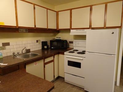 キッチンが付いた広々としたお部屋で、お値段もとてもリーズナブル。ダウンタウンからは離れていますが、目の前にショッピングモールがあり、近所に大きなスーパーも2軒、リカーショップもあります。Urban Fareというスーパーには味付けされたお肉が豊富にあるので、お部屋で調理して食べるのも楽しいです。リカーショップでは地元のワインやクラフトビールも豊富に置いています。歩いてすぐのところに夜遅くまでやっているタップハウスもあります。バス停もホテルの目の前にあるので、ダウンタウンへの移動も楽ちんでした。空港からはタクシーで30分くらい、チップ込み45ドル弱でした。