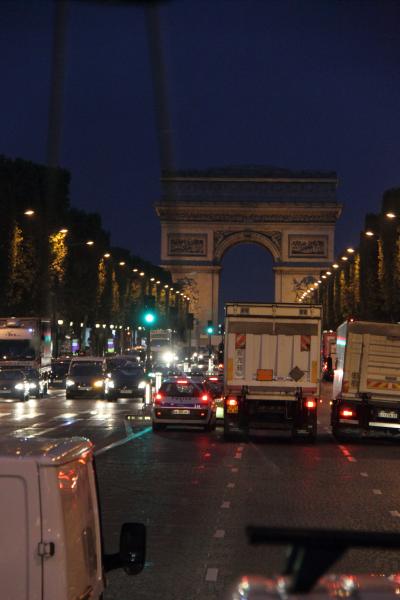 パリからバスで向かいました。朝が早い。。そして日の出が遅いからまだ真っ...