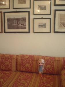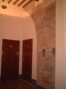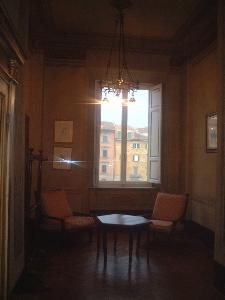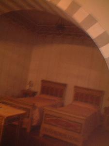 部屋の天井は高く、とても古典的。壁にはひびが多数入っていて、少し崩れて...