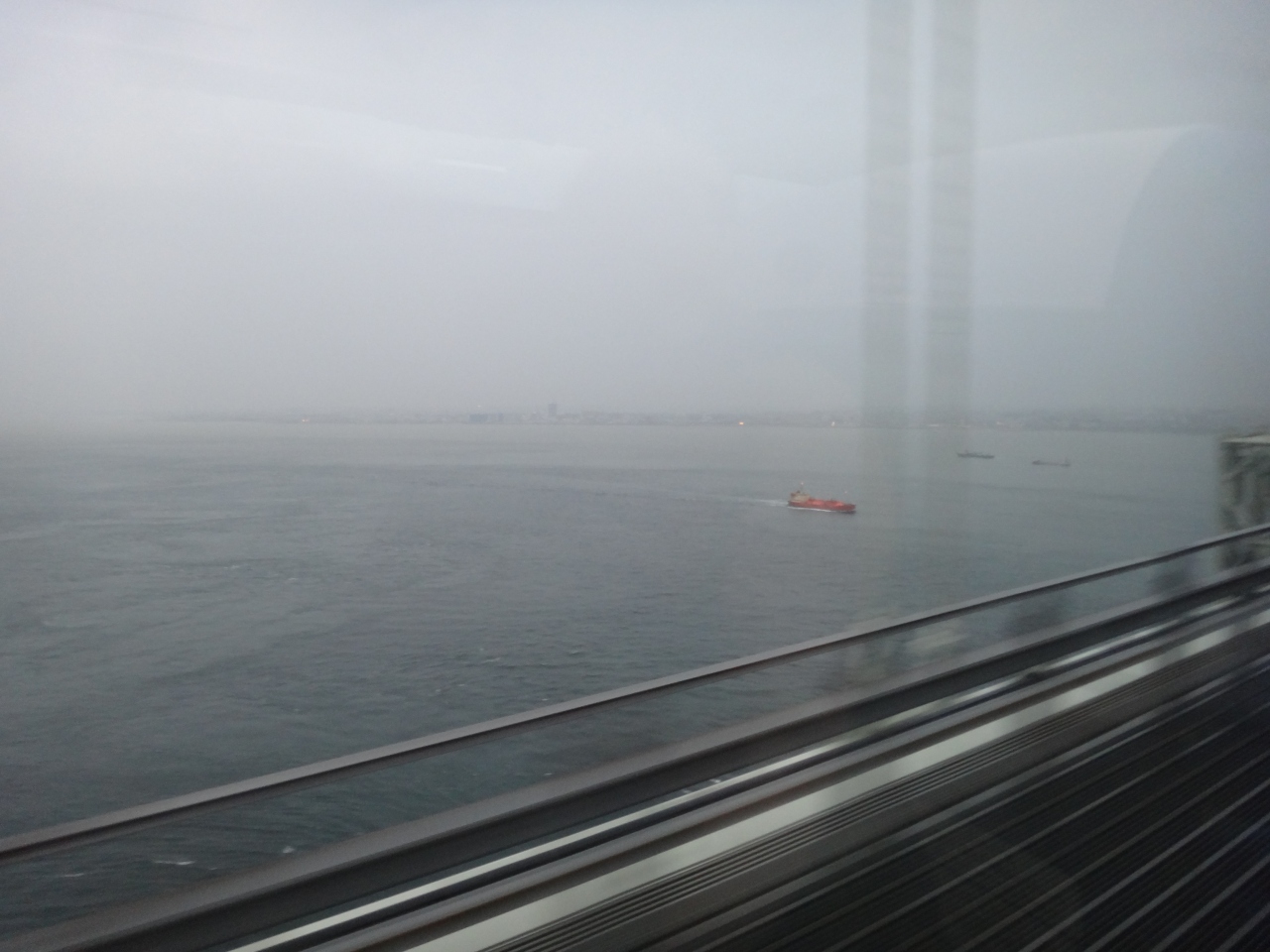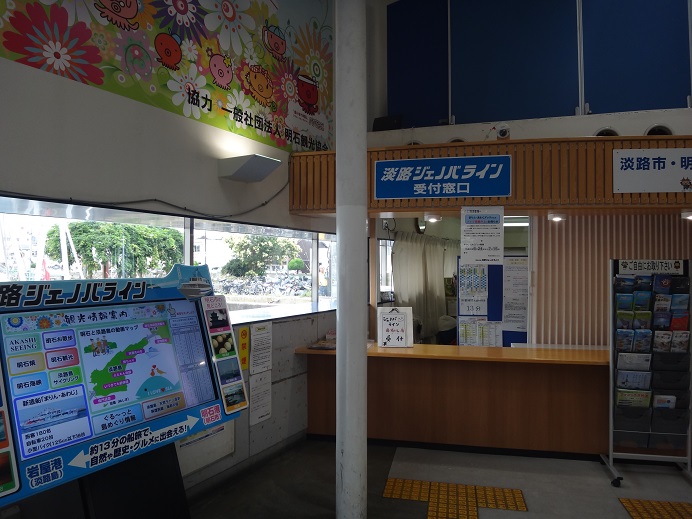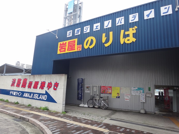 明石からジェノバラインに乗って淡路島の岩屋へ渡り、帰りは洲本から高速舞子まで高速バスに乗りました。海沿いの道を走り、最後に明石海峡大橋の上を走って、橋を渡り切ると舞子です。舞子の高速バス乗り場(降り場)は明石海峡大橋の上にあって、高さを実感できます。