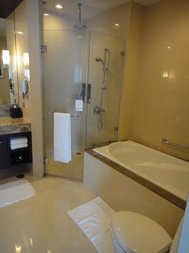 客室はとても良かったです。アパート仕様なのでキッチンがあり、食器も調理器具も揃っています。バスルームもきれいで、バスタブと別にシャワーブースがありました。気をつけないと跳ね返って服がぬれるくらい水圧はバッチリでした。部屋からの眺望は悪いです。
