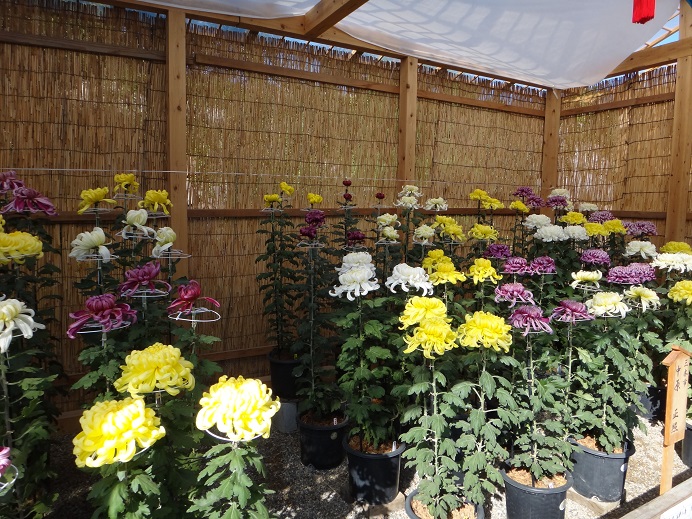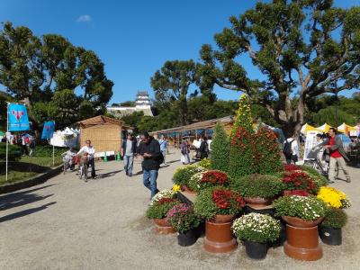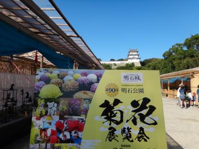 ちょうど近くに行く用事があったので、菊花展開催中の明石公園へ行ってみました。前に行った時よりもかなり人が多かったです。芝生の上にお店がたくさん並んでいて、食べ物も買えるようになっていました。土曜日だったからだと思います。菊はまだ満開ではありませんでした。