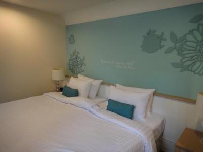 ネットで安いときに時々泊まります。BTSの駅からは遠いです。トンローのお店はBTS駅から遠いところが多いので、ホテルはちょうどその中間くらいに位置しています。トンローで遊ぶ方にはいいんじゃないかと思います。BTSまでは無料送迎のトゥクトゥクがあります。ホテルからBTSまではトンローが一方通行なので、大回りになります。内装は部屋も共有部分も凝っていて可愛いですが、若干安普請で、棚が取れたことがあります。スーペリア(一番安い部屋)に初めて泊まった時には、とても広くきれいでした。2度目に同じスーペリアに泊まった時には、1度目の部屋の半分の広さしかなく、小さな窓の外は物置でした。他の部屋の室外機があったのか、壁からは夜中中ずっとモーター音がしていました。満室で、普段使ってない部屋だったのでは?と疑ったくらいです。ちなみにこの<ハズレ>の部屋は1階の、フロントからすぐの部屋でした。デラックスはバスルームも部屋も広くてとてもいいのですが、スーペリアの<アタリ>と比べると、あまり差はありません。スーペリアはこの<アタリ>と<ハズレ>の中間くらいの部屋もありました。以前はスーペリアの朝食付きで5千円程度でしたが、最近は7千円くらいするので泊まっていません。