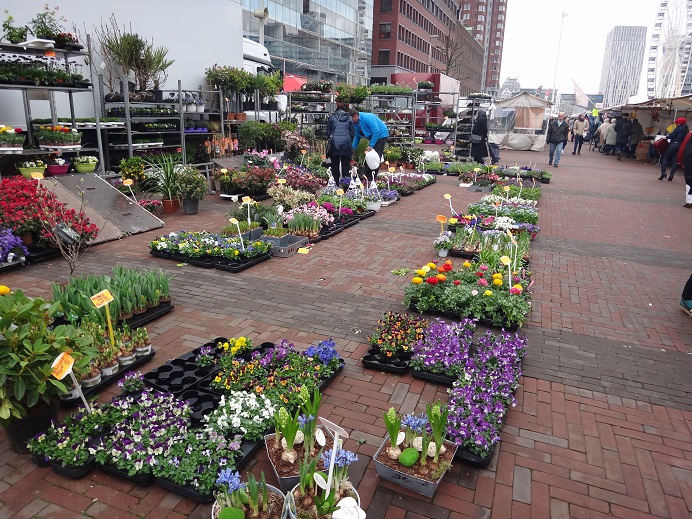 土曜日に行きました。さすがオランダ、お花が多く、球根系の植物がたくさん見れました。あまり観光客向けを意識していないのか、お花を見ていたら邪魔だとばかりに台車で轢かれそうになったり、写真を撮っていいか聞いたら怒ったように断られたりしました。でも食べ物屋さんの女の子は優しかったし、お客さんの地元の人とお話ししたり、とても楽しかったです。食べ物の屋台もあるので買い食いしながら見て回れます。