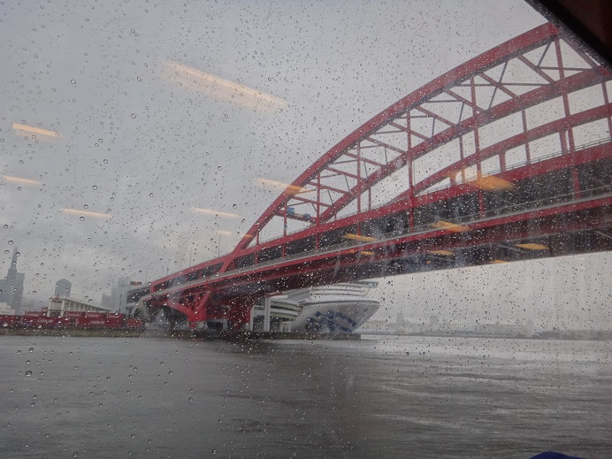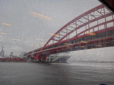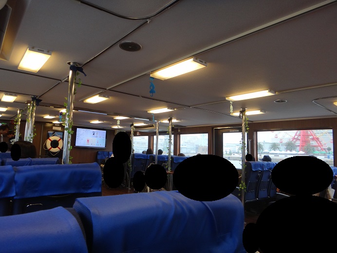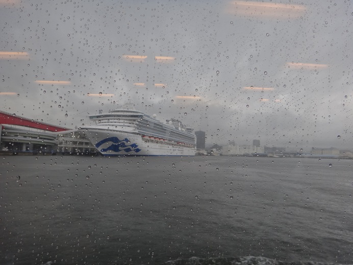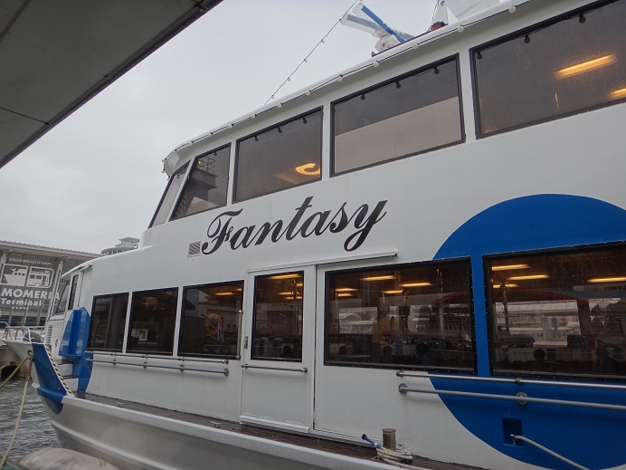 神戸港のクルーズと言うと、夜景を見ながらディナークルーズなどのイメージですが、このファンタジー号は食事なしで、45分かんだけの気軽なクルーズです。乗船した日が雨だったのですが、45分なら視界が悪くてもダメもとで乗ってみました。やはり、ガラスに水滴が付いて見えにくかったです。ガラスが曇るようなことはありませんでした。神戸大橋をくぐった辺りでUターンします。ぐるっと大回りする感じで、距離は短いです。明石海峡大橋までは行きませんでした。