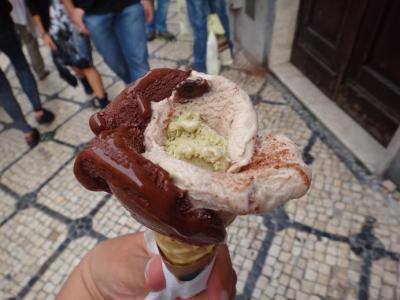 薔薇の形に盛ってくれる事で有名な、アモリーノのリスボン・シアード店です。(他にバイシャにもお店がありました)私は初めて入りましたが、食べたことのある友人は、盛り方が下手できれいじゃないと言っていました。アイスの味は美味しかったです。