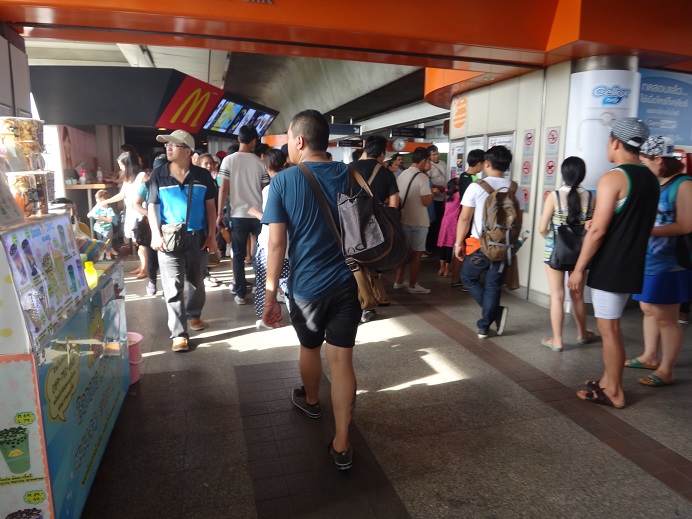 チャトゥチャックに行くときによく利用します。行きも帰りも人でいっぱいですが、始発なので割と座れます。ジュースとアイスの売店が改札外にあります。これだけ人が多いので、コンビニがあれば売れそうなのに、何もありません。