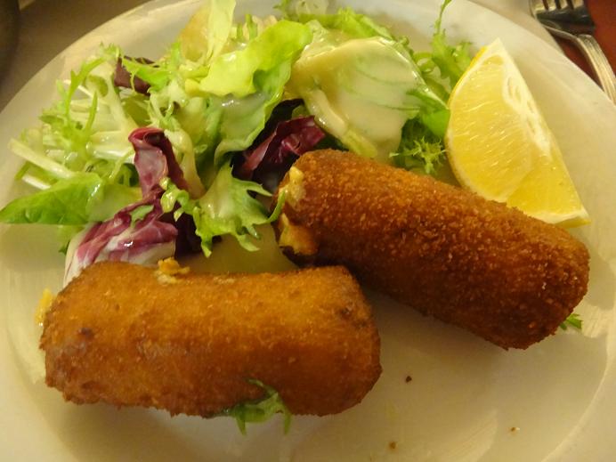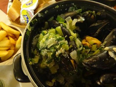 グランプラスに面したテラス席が最高ですが、雨が降ってきそうだったので地下で頂きました。観光地のど真ん中にしては、地元の人も多いようです。ムール貝と海老のクリームコロッケをオーダーしました。ムール貝はとても美味しかったです。コロッケの方も美味しかったですが、日本で食べるのとあまり変わらないかな?