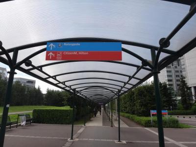 シャルルドゴールド空港のターミナル3の外にあるホテルです。この辺りのホテルでは、私が泊まった日は一番安かったです。ターミナル3までは空港の無料の電車で行けるし、表示もとても分かりやすいです。トランジットの時や、翌朝の出発が早い時の前泊にもお勧めです。ホテルは新しく清潔で、狭いですが気に入りました。