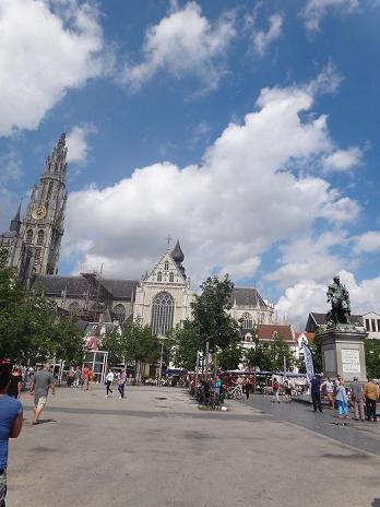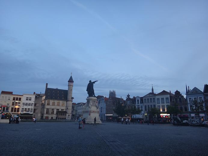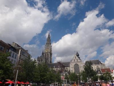 アントワープの旧市街の中心地がこのグルン広場になります。観光の拠点です。プレメトロの駅を出るとすぐにこの広場があり、ノートルダム大聖堂が見えるので、それを目印に歩けばマルクト広場も迷わずにすぐに着きます。