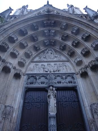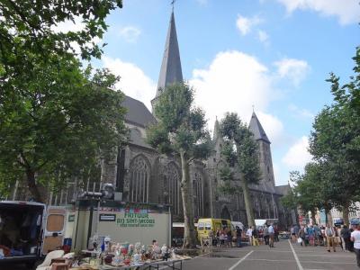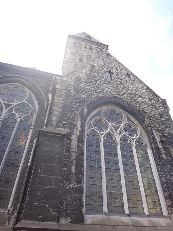 ゲントの中心地、コーレンマルクトから徒歩15分くらいです。レイエ川から見ると、金曜広場の奥のほうにあります。毎週金曜日に、この教会の周りで蚤の市が開かれます。わりと大きな教会だと思いますが、あまり観光客もいないように感じました。ミサの最中だったので、中は見れませんでしたが、入り口のステンドグラスはきれいでした。