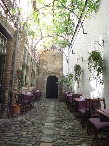 ノートルダム大聖堂のすぐ近くです。本で誉めてあったので行ってみました。テラス席は混んでいましたが、中は空いていました。お店は広くてきれいで、高級よりの中級くらいでしょうか。アントワープ名物のビーフシチューは、サラダとフリットが付いてきて、この1品だけでセットのような感じです。