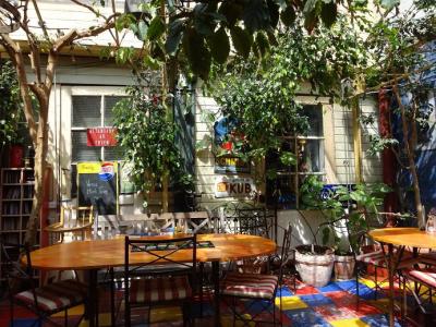 デルフトの川沿いにあるとっても可愛いカフェです。外にテーブル席があり、分かりにくいですが建物の奥に中庭があります。この中庭には大きな鳥かごがあり、緑のインコとヨウムがいます。ただ、中庭といってもぐるりと四方を囲まれているので、鳥の匂いがこもっています。鳥好きではない人には、ここで食事をするのは無理かもしれません。