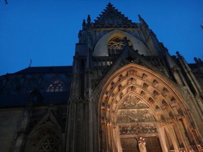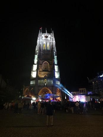夜にトングレンに到着したので、教会の中は見ていません。夜はライトアップされていてとてもきれいでした。街の規模の割には大きめの教会だと思います。外しか見ていませんが、装飾がきれいでした。私たちが行った時には、教会の前の特設ステージでコンサートか何かをやっていました。