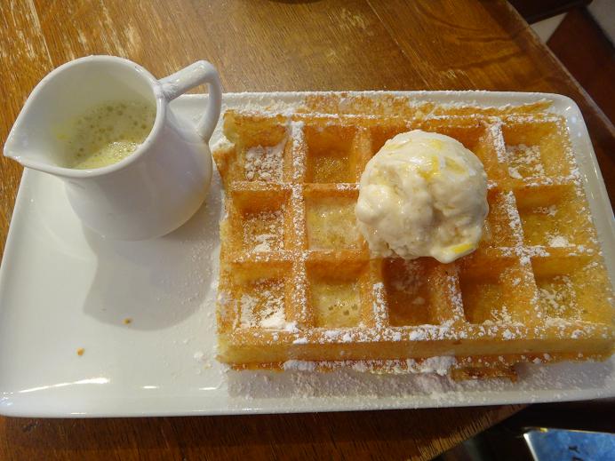 2階のティールームでワッフルとカフェラテを頂きました。ワッフルは軽くてサクサクしていて、日本の重いワッフルとは一味違います。あまりお腹が空いていなくてもぺろりと食べられます。ワッフル自体には全く味がないので、プレーンでも粉砂糖がかかってきます。私はアイスクリーム+レモンを食べましたが、とても美味しかったです。あまり商売っ気がないのか、ティールームは夕方6時に閉まってしまいます。いつも並んでいるので、時間に余裕をもって行くことをお勧めします。