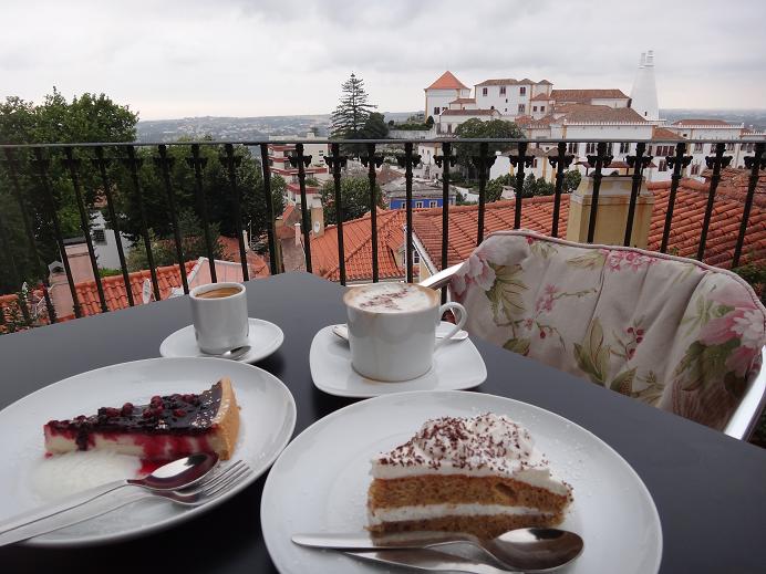 シントラの中心地、シントラヴィラから少しだけ外れた高台にあります(少し歩く程度です)。室内は壁に絵が描かれ、シャンデリアがあって少し宮殿のようです。女性は好きだと思います。室内は食事利用のみです。外のテラスはカフェだけの利用が出来ます。ケーキは大きくて甘くてあまり美味しくなかったですが、景色は良かったです。