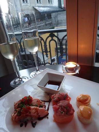 カイスドソドレ駅前の、LXブティックホテルの1階にあります。和食のお店ではなく、あくまでも寿司カウンターのあるレストランバーです。LXブティックホテルに宿泊すると、毎日お寿司3貫とワイン1杯のサービスがあります。ゆっくり食べていると予約客が入ってきて、とても混んでいたので、私たちも最終日にここで食事しようと計画していましたが、結局時間が無くて実現しませんでした。毎晩満席で、とても人気があるようでした。お寿司は創作寿司で、とても美味しかったです。