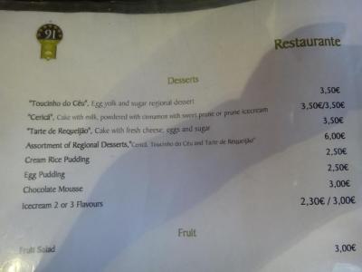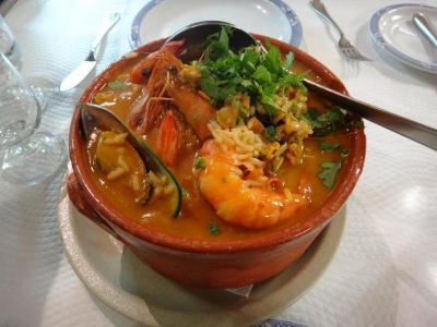 ホテルの人に聞いて行ってみました。シーフードリゾットがお勧めと聞いたので、それにしました。2人前からのオーダーになります。前菜もパンも断ったのに、量がすごく多くて食べ切れませんでした。女性なら3人でも食べきれないかもしれません。店内は地元客らしき人たちで7分くらいの入りでした。ガヤガヤした感じは無く、静かで落ち着いています。高級な雰囲気ではないです。シントラ駅から徒歩5分ほど、市庁舎のすぐ横です。