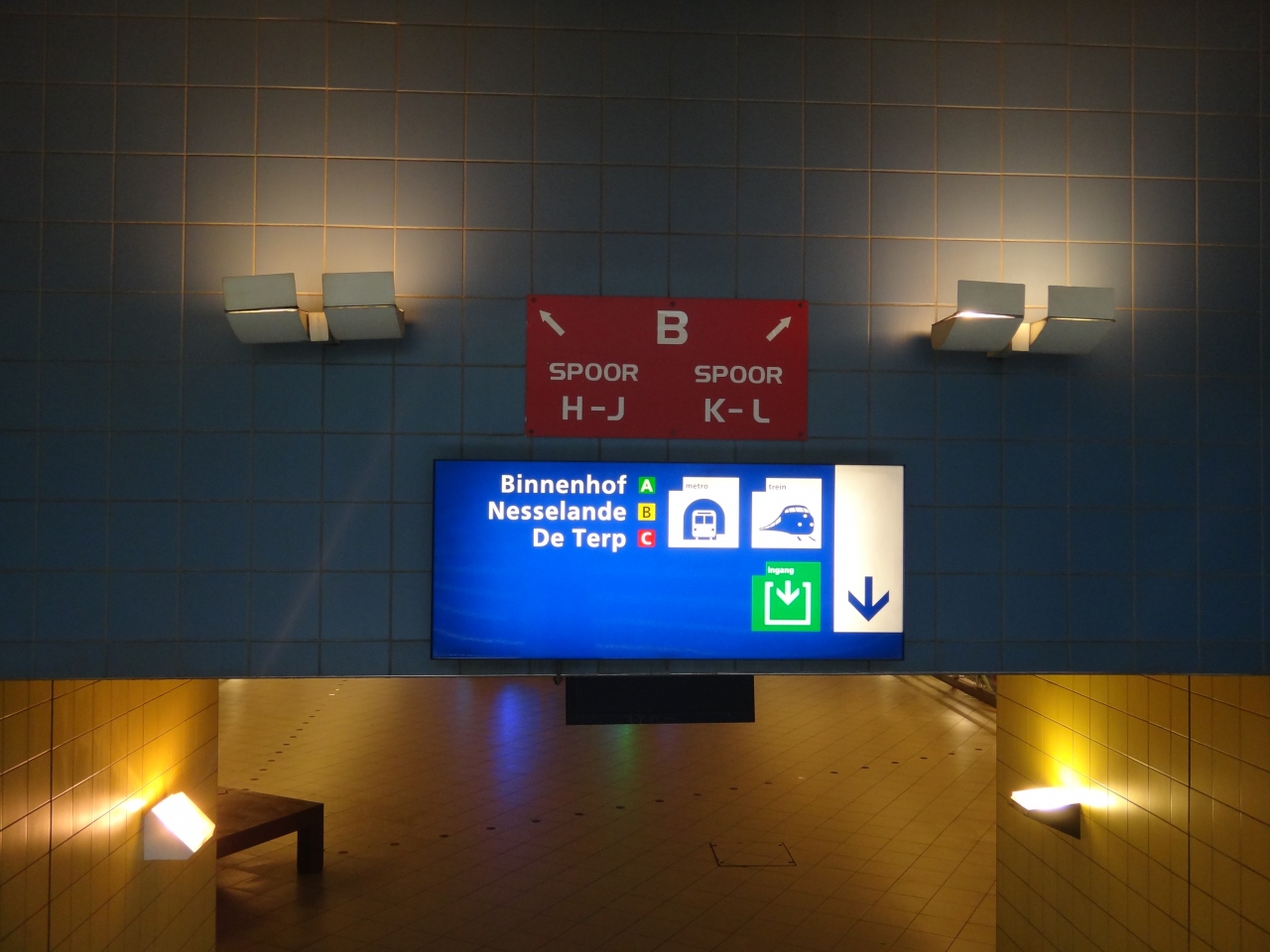 マルクトハル側の出入り口がメインですが、Oostplein方向へはこの入口からは乗れません。トラムのホームと並行している大通りを渡ったところにある、地下への階段を降りたところからしか乗れません。階段を降りると、遺跡らしきものがあります。メインの方には無いので、遺跡を見るために階段を降りてみるのも良いと思います。- 旅行時期