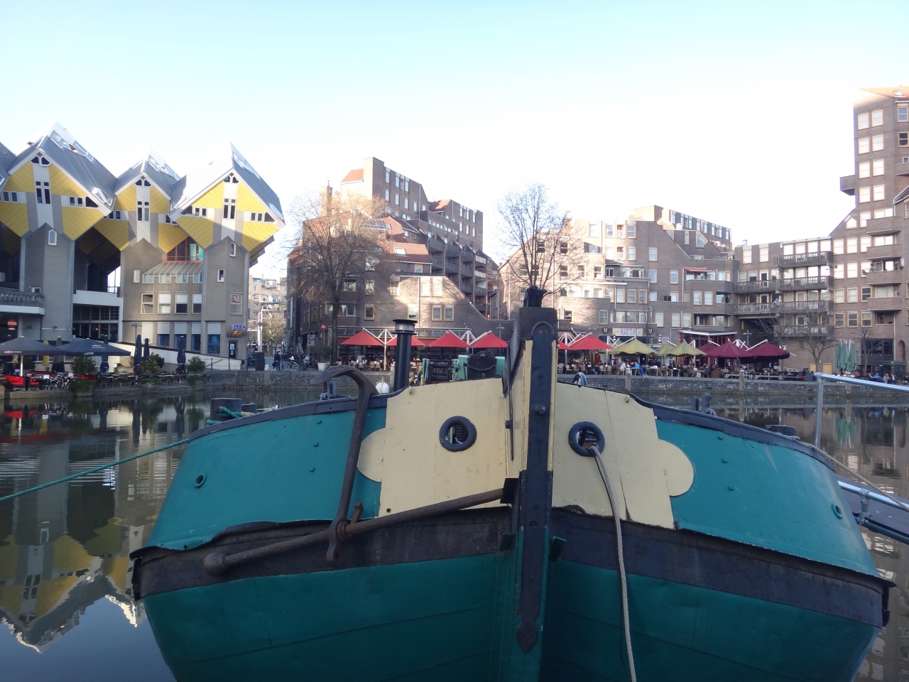 ロッテルダムのブラークの辺りにある、古い港です。キューブハウスのすぐ横にあって、港と船とキューブハウスを入れて写真が撮れます。源の周りにはテラス席のあるカフェがあって、賑やかな雰囲気です。アムステルダムと違って人が多すぎず、でも賑やかな雰囲気がとても良かったです。