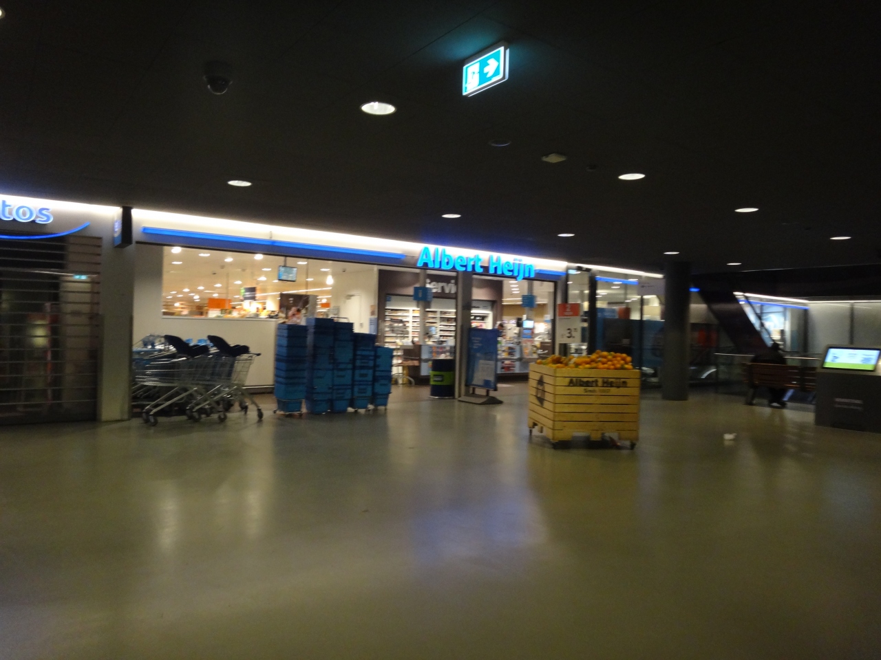 マルクトハル(マーケットホール)の地下にあるAHです。AH(アルバートハイン)はオランダのあちこちで見かけるスーパーマーケットで、パンやサラダなど買ってホテルで食べるのに何度も利用しました。マルクトハルの営業中は中から行けるのですが、私はマルクトハルの営業時間が過ぎてからだったので、地下へ降りる入口が分からずにウロウロしてしまいました。広場に面した、観覧車の前辺りです。