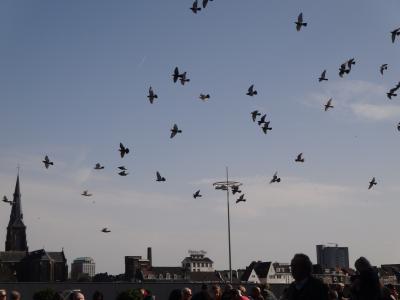 お店に面したテラス席に座りましたが、お店から少し離れたマース川沿いのテラス席もありました。みなさん川沿いに座っていましたが、頭上が鳥だらけで、私は座る気になれませんでした。飲み物くらいなら大丈夫だと思います。