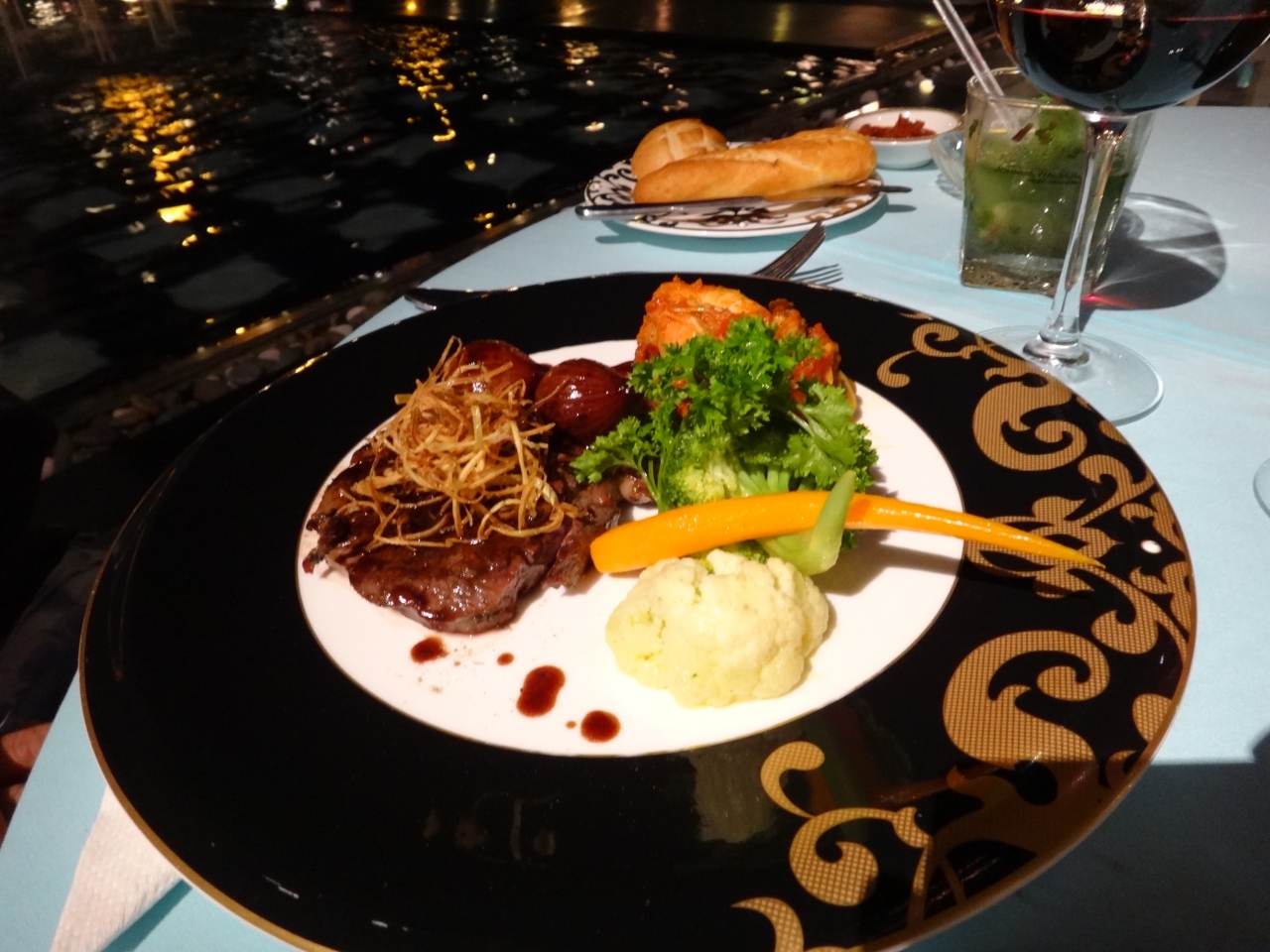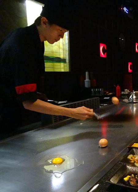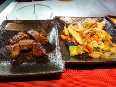 鉄板焼き、寿司、鍋(?)の3コーナーに分かれた日本食レストランです。私たちは鉄板焼き希望だったので、鉄板のテーブルを予約してから行きました。日本的な鉄板焼きではなく、アメリカで日系人がやっているような、パフォーマンスしながら焼くタイプです。味は正直なところ、油多めで焼いただけで、日本の鉄板焼きには遠く及びませんが、パフォーマンスが楽しいです。アラカルトのみのオーダーは出来ず、メインを選ぶとサラダ・前菜・チャーハン・お味噌汁が付いていました。一番安いメニューで3500円くらいだったと思います。割高ですが、2時間くらい楽しめます。