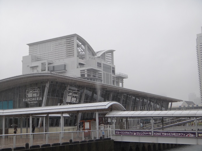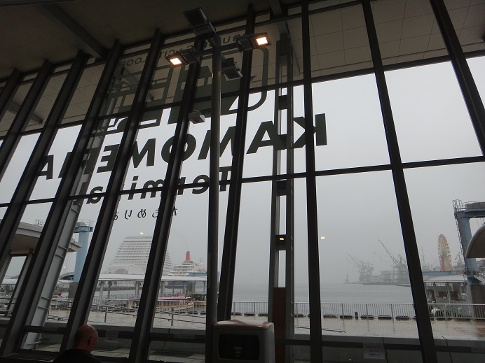 メリケンパークから出港するクルーズ船のターミナルです。中は清潔できれいです。出港までこの中の待合室で座っていられます。中にはカフェやベンチやトイレがあるので、船に乗らなくても観光途中の休憩に便利です。お土産屋さんもあります。