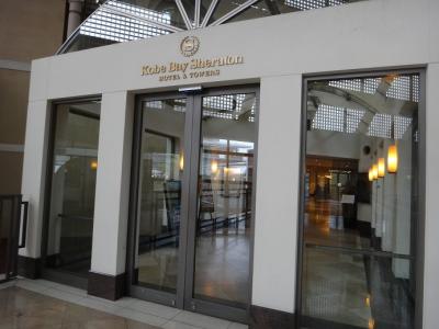 初めて神戸ベイシェラトンに入りましたが、外から見るよりも中(1階)は小ぢんまりした印象です。2階にレセプションがあるので、2階の方がメインなのかと思います。1階は天井が低めで入ってすぐに柱があり、圧迫感があります。ホテルの場所が少し不便ですね。関空利用だとバスで直通なので良いですが、三宮まで電車1本で出られないのは観光には不利かなと思います。