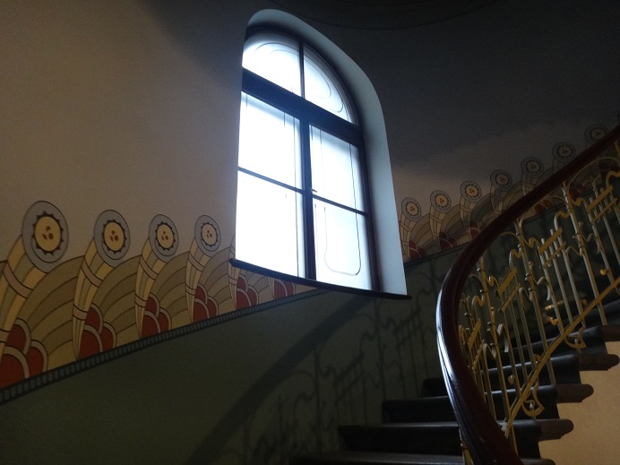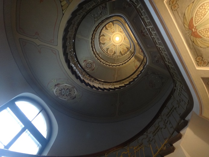 ユーゲントシュティール建築群の近くにあって、このホテル自体も古いユーゲントシュティール建築をリノベーションしています。その為、客室の天井が高くて開放感があります。階段の踊り場にステンドグラスの窓があったり、ホテル自体もじっくり見学したい感じでした。