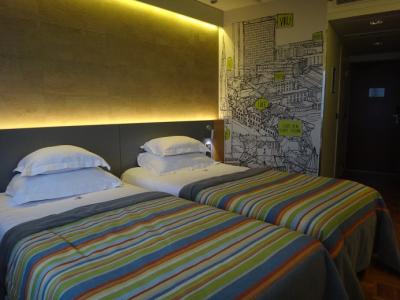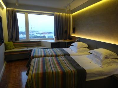 当日早朝に予約して、一番安い部屋で2泊税込189ユーロ(1泊94.5ユーロ)でした。事前にダブルベッドとバスタブ付きの部屋をリクエストしていたところ、チェックイン時に希望の部屋は用意できなかったと言われました。ツインでバスタブ付きかダブルでシャワーのみか選ばせてもらえたので、ツインにしました。リクエストメールを出して数時間しか経っていなかったのに、きちんと伝わっていました。滞在中にボーディングパスのプリントアウトをお願いした際にも、すぐに対応してもらえました。大型ホテルなのでアットホームな感じの親切ではありませんが、システムが整っていて、ビジネスライクにきちんと対応してもらえる感じです。