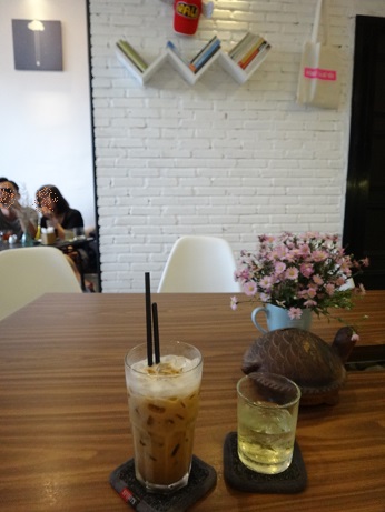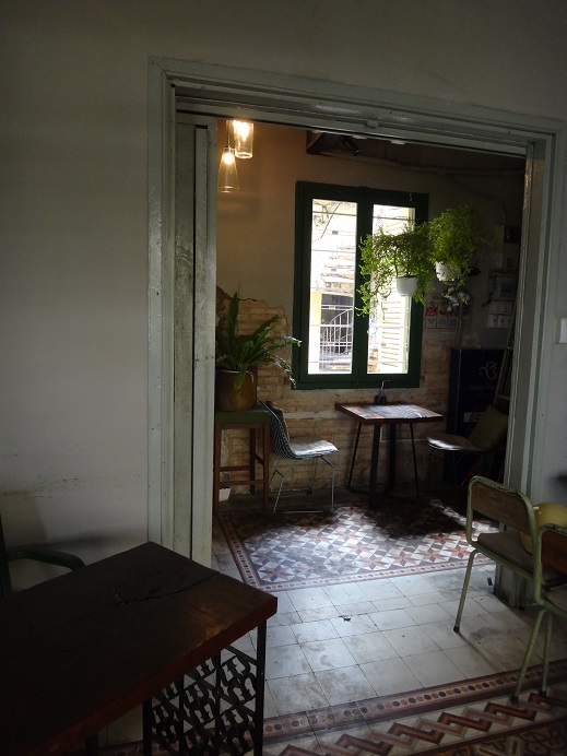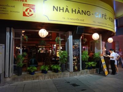 グエンフエの大きな本屋さんのビルの上にあるカフェです。入口が奥まったところにあるので少し分かりにくいです。ビルの中にはお店やカフェがたくさんあるので、どこに行くと決めずに気に入ったお店に入れば良いと思います。