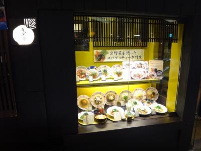 京野菜を使った創作パスタのお店です。メニュー構成も内容も和風パスタの五右衛門にそっくりで、同じ会社だというのがすぐ分かりました。京風らしいですが、旅行先の京都でわざわざ食べるものでは無かったです。五右衛門が好きでよく食べるので、味は好みでした。
