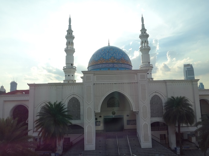 空港からホテルへ向かう途中、KLセントラルからモノレールに乗りました。モノレールの車窓越しにストの風景を見ていると、美しいモスクが目に入り、夢中でシャッターを切りました。モスクの駅からすぐのようでしたが、荷物があったので中の見学まではしませんでした。