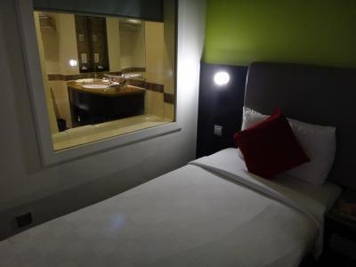 短い滞在だったので、多少高くても便利な場所の条件で探してみたところ、このノボテルが立地が良いのに6千円台でした。チェックインは前の人にすごく時間が掛かって待たされましたが、お詫びの言葉と、クラブフロアへのアップグレードがありました。部屋のみで、クラブラウンジの使用は付きませんでしたが、安かったので満足です。部屋はきれいでしたが、バスルームが若干古かったです。排水やお湯の量は問題ありませんでした。また泊まりたいと思います。