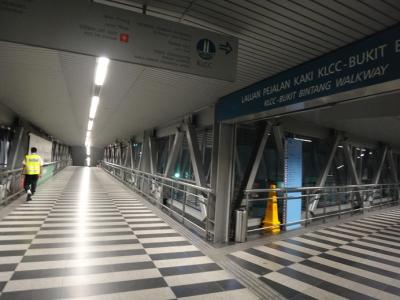 KLの街中にある、ブギッビンタンやKLCCやパビリオンなどに行ける歩道橋です。パビリオン近くのホテルに泊まっていましたが、車が多くて道路を渡れないので、スカイウォークがあって便利でした。昼間は人通りが多いですが、夜はまだ10時前でも人が少なかったです。危ない感じはしませんでした。