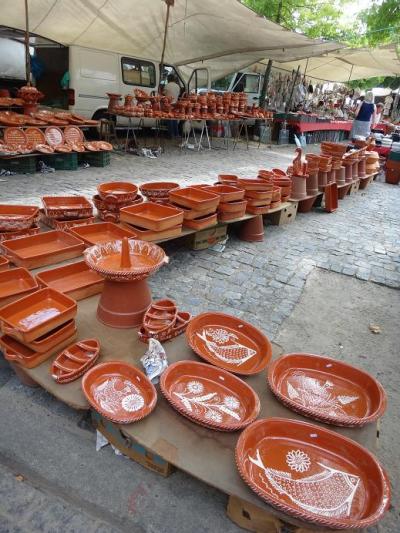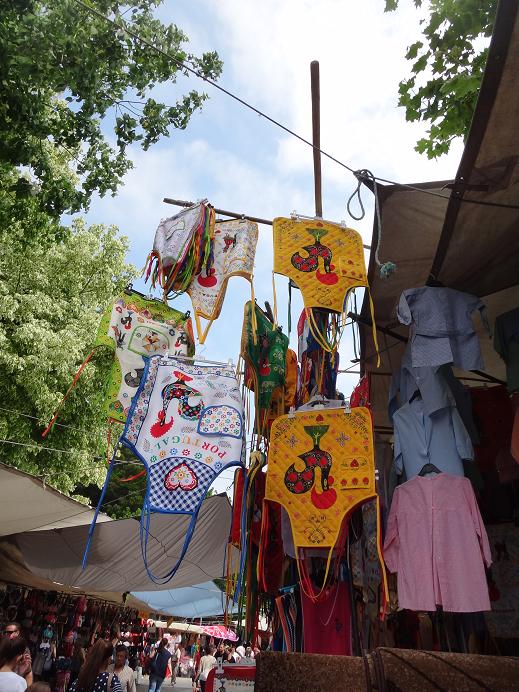 毎週木曜日にバルセロスのレプブリカ広場に立つ市です。ポルトから日帰りで行って来ました。かなり広い市ですが、3-4時間もあれば充分です。ポルトからの往復を入れても半日で行って帰って来れます。食べ物・日用品・雑貨・衣類・お土産物、ありとあらゆる物が売っていますが、あまり観光客向けではなく、近隣の地元の人向けの雰囲気です。市の中にカフェやレストランは見かけなかったと思います。残念ながら、ポルト市内より特に安くは無かったです。ポルトガル中で見られる黒い鶏のガロは、このバルセロスの伝説が元になっているそうです。