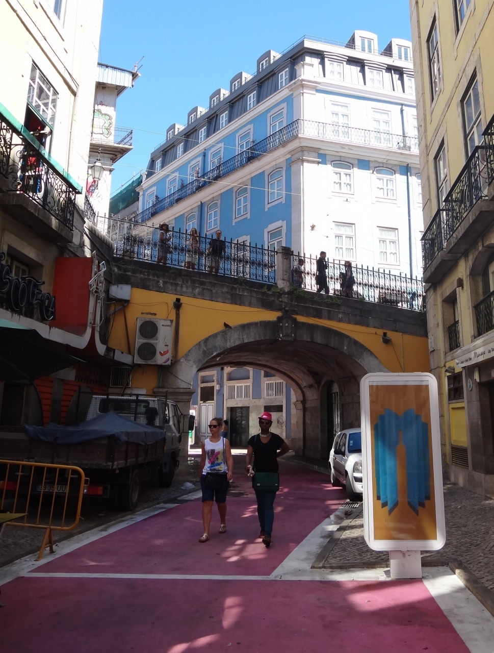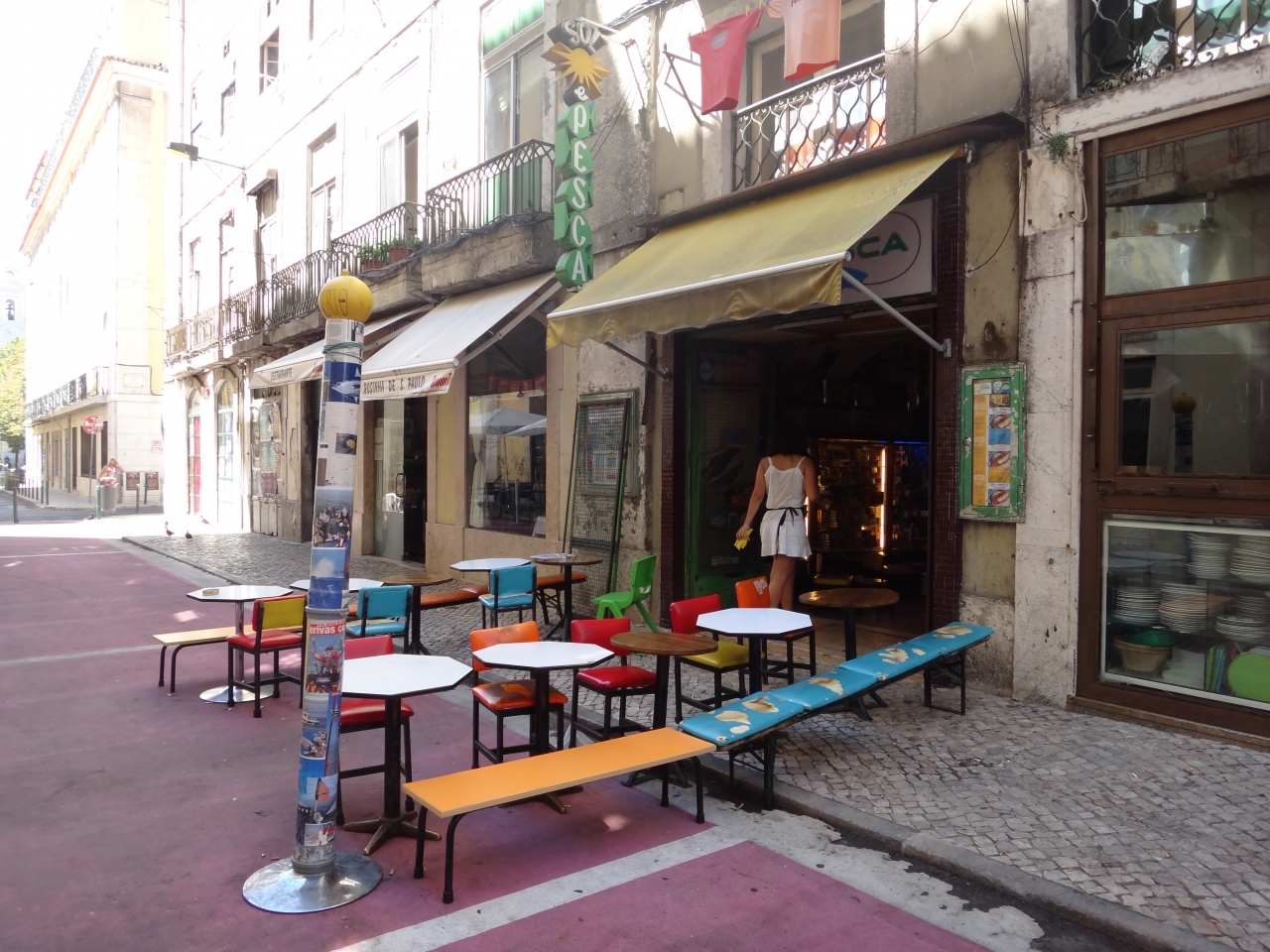 カイスドソドレ駅をテージョ川と反対側に出て、通りを渡った辺りにあります。あまり大きな通りではありませんが、ピンクに塗ったことで有名になったようです。私はすぐ近くのLXブティックホテルに泊まって、ピンクストリートも、観光スポットと言う事も知らずに食事に行きました。ホテルの部屋からこのピンクストリートが見えるのですが、昼間はのんびりした雰囲気ですが、夜になるとびっくりするほどの人が集まります。それも、9時10時ではなくて、真夜中過ぎから朝までです。バーやクラブがあって、店内に入りきらないので外で飲む人が多いようです。ピンクストリートの上にあるアレクリン通りからも見えるので、時間があれば見に行くと面白いと思います。