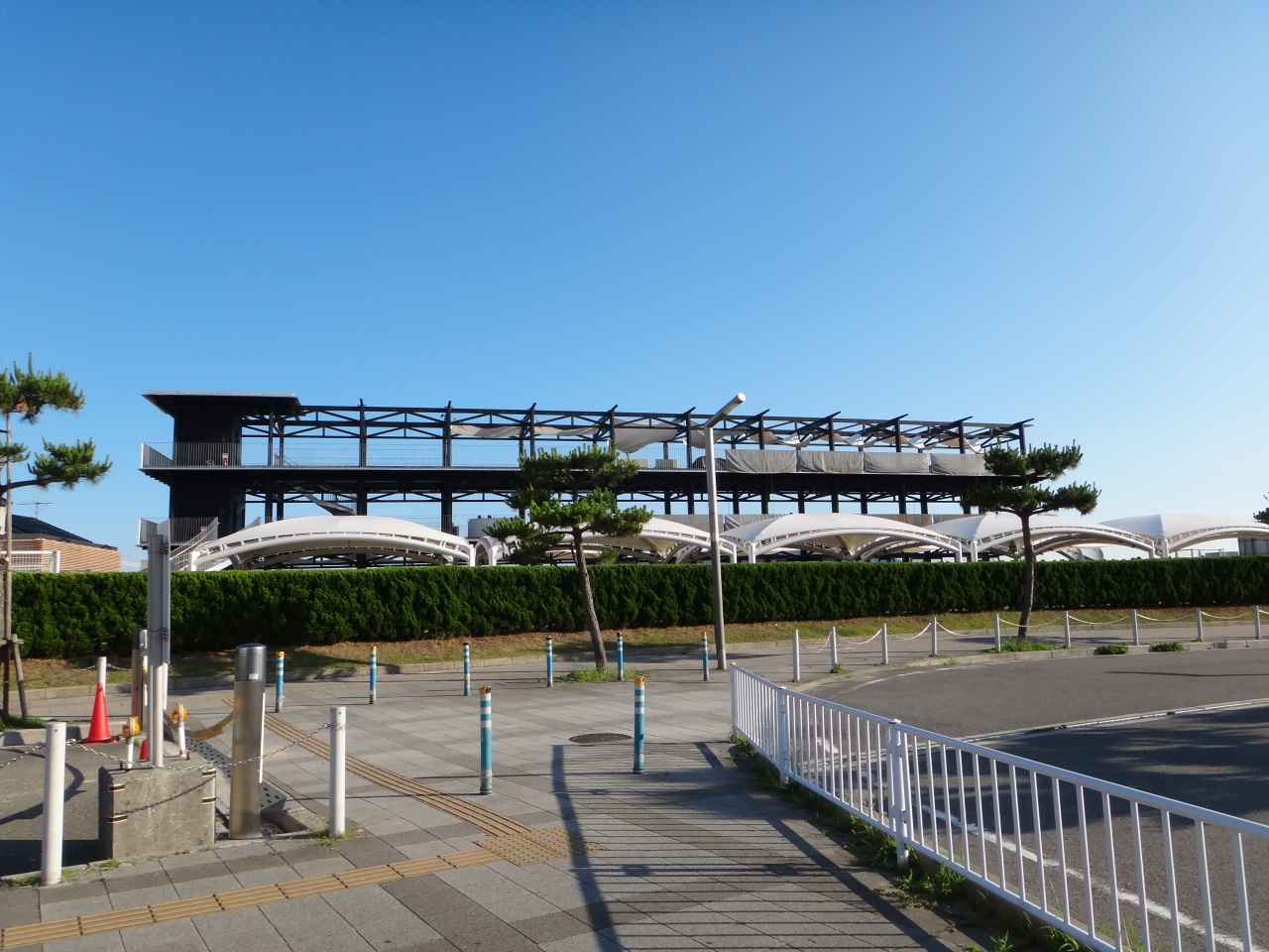 朝霧駅からすぐの大蔵海水浴場にあるBBQスペースが新しくなっていました。以前は地面を区切っただけのBBQ会場でしたが、3階建てのオープンレストランのような造りになっていて、とても開放的で良い雰囲気です。1人でBBQは出来ないし…と思っていると、ソフトクリームの販売もしていました。