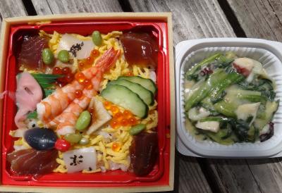 お天気が良かったので、お店よりも外でお昼を食べたいと思って、ピオレ明石の中のお惣菜屋さんでちらし寿司とタコのぬた和えを買いました。明石公園まで歩いて、ベンチでのんびりとお弁当を頂きました。電車に乗る前に買うのにも良さそうです。
