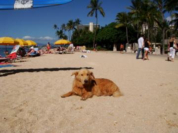 その付近にいる犬。海を眺めたり、観光客にかわいがられたり、時々泳いだり...