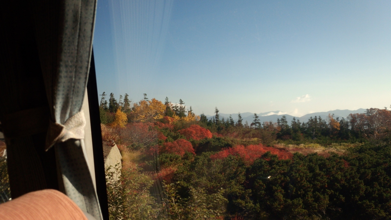 何より、紅葉がベストシーズンと言ってもいいほどの見事さ。特に、紅葉の赤や黄が、濃い緑のはい松の間に点在しているコントラストの美しさに驚きました。