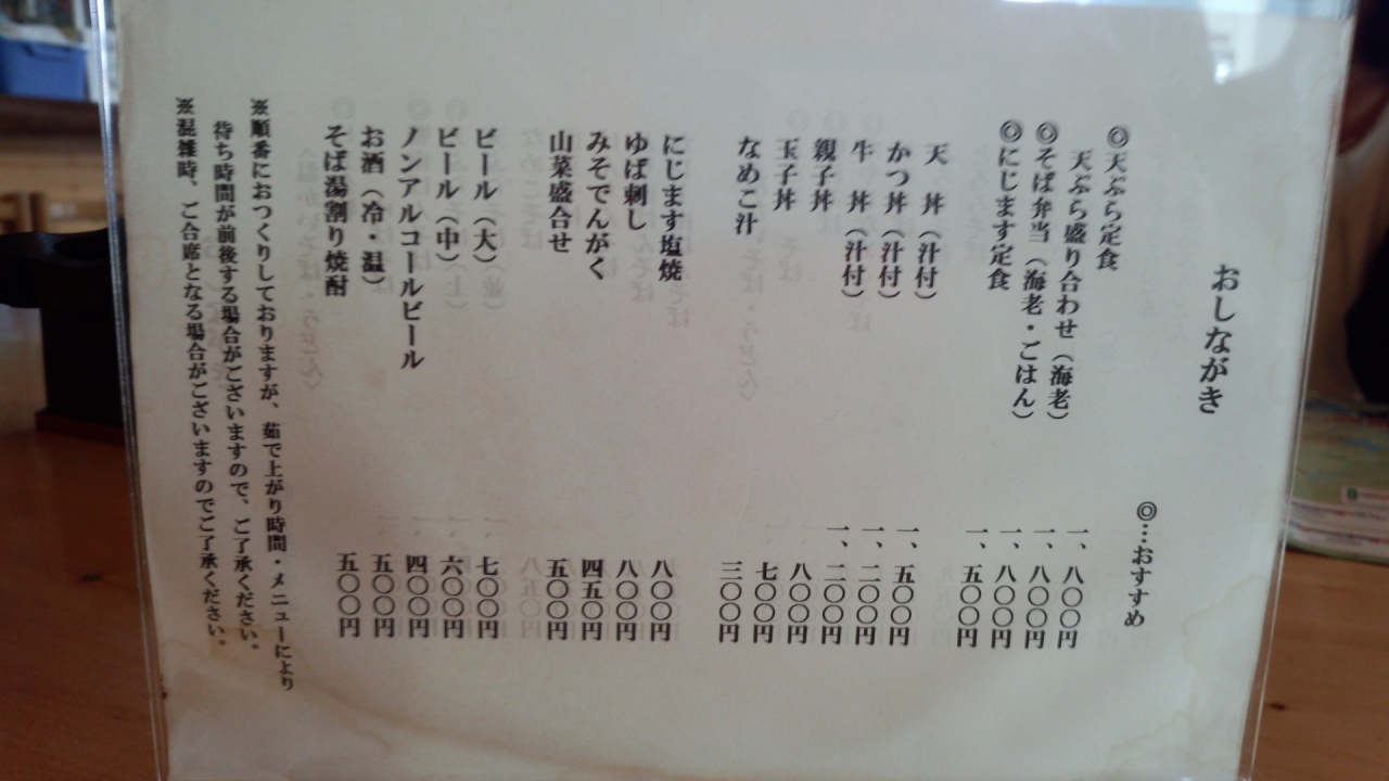 入店は午後3時ごろでしたが、かなりの混雑。先客がだいぶ待たされているようで、フロア係の女性は一品運ぶたびに「遅くなってすみません」と平謝り。私たちはかつ丼と山菜蕎麦を頼みましたが、供されるまで30分ほどかかりました。
