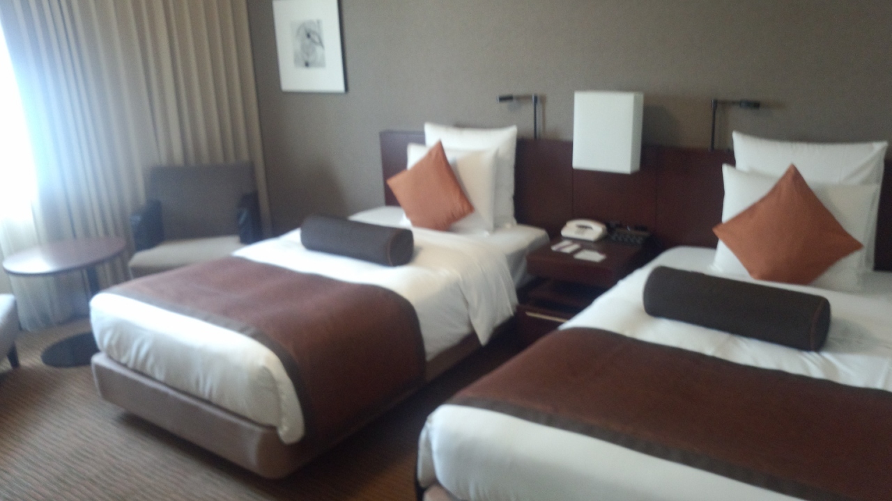 朝食は、1階のレストランでの洋食ブッフェと和食の「たん熊」の和定食が選べるので、一日ずつ利用しましたが、洋食ブッフェは中国人と米兵の団体が入っていたようで、大混雑。時間によっては順番待ちの長い列ができていました。