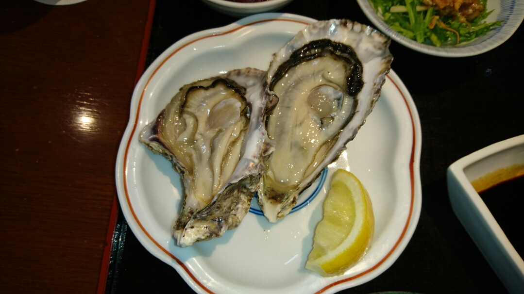 お酒も、牡蠣もなかなか来ないなぁと思っていると、なんと定食のお皿に冷酒も牡蠣も一緒に載せられ配膳。酒飲みとしては、まず、冷酒で牡蠣をツルッといきたいと思っていたので、肩透かしをくらった感じ。牡蠣は、産地の違いが分かって楽しめたし、金目もおいしかったのですが、提供の仕方にちょっとがっかりしました。