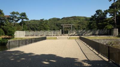 鳥居のある参拝ポイントから見ると堀が三重になっていることがわかったものの、どこが前方で、どこが後円なのかも分からないくらい大きく、木々に覆われていました。